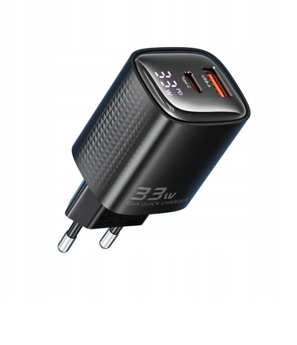 33W GaN – ładowarka sieciowa USB-C / USB-A z cyfrowym wyświetlaczem (PD + QC)