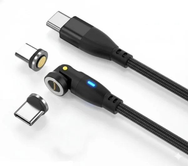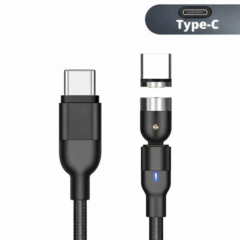 Magnetyczny kabel Type-C → Type-C 2 m | Obrotowy 360° | Kątowy wtyk | Fast Charging