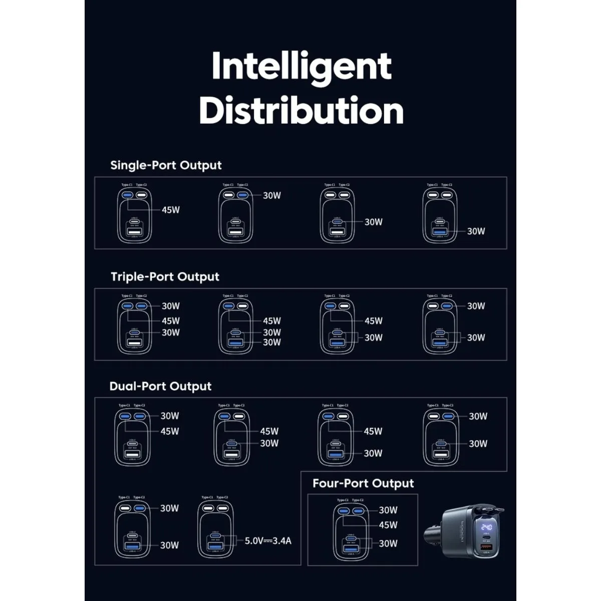 Zapewnia szybkie i stabilne ładowanie smartfonów, tabletów, nawigacji oraz innych urządzeń mobilnych. Obsługa Power Delivery (PD) do 45 W oraz PPS gwarantuje wysoką efektywność i kompatybilność z nowoczesnymi urządzeniami.