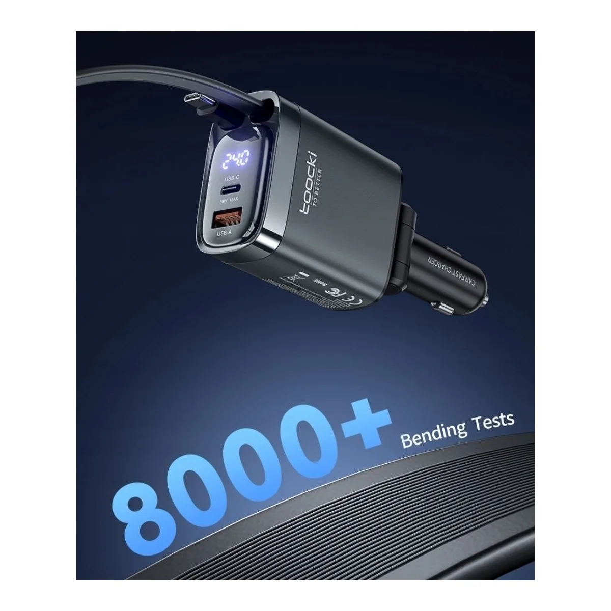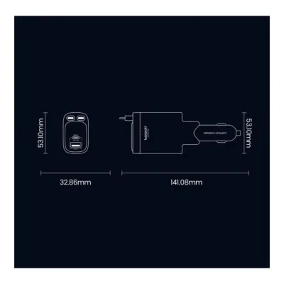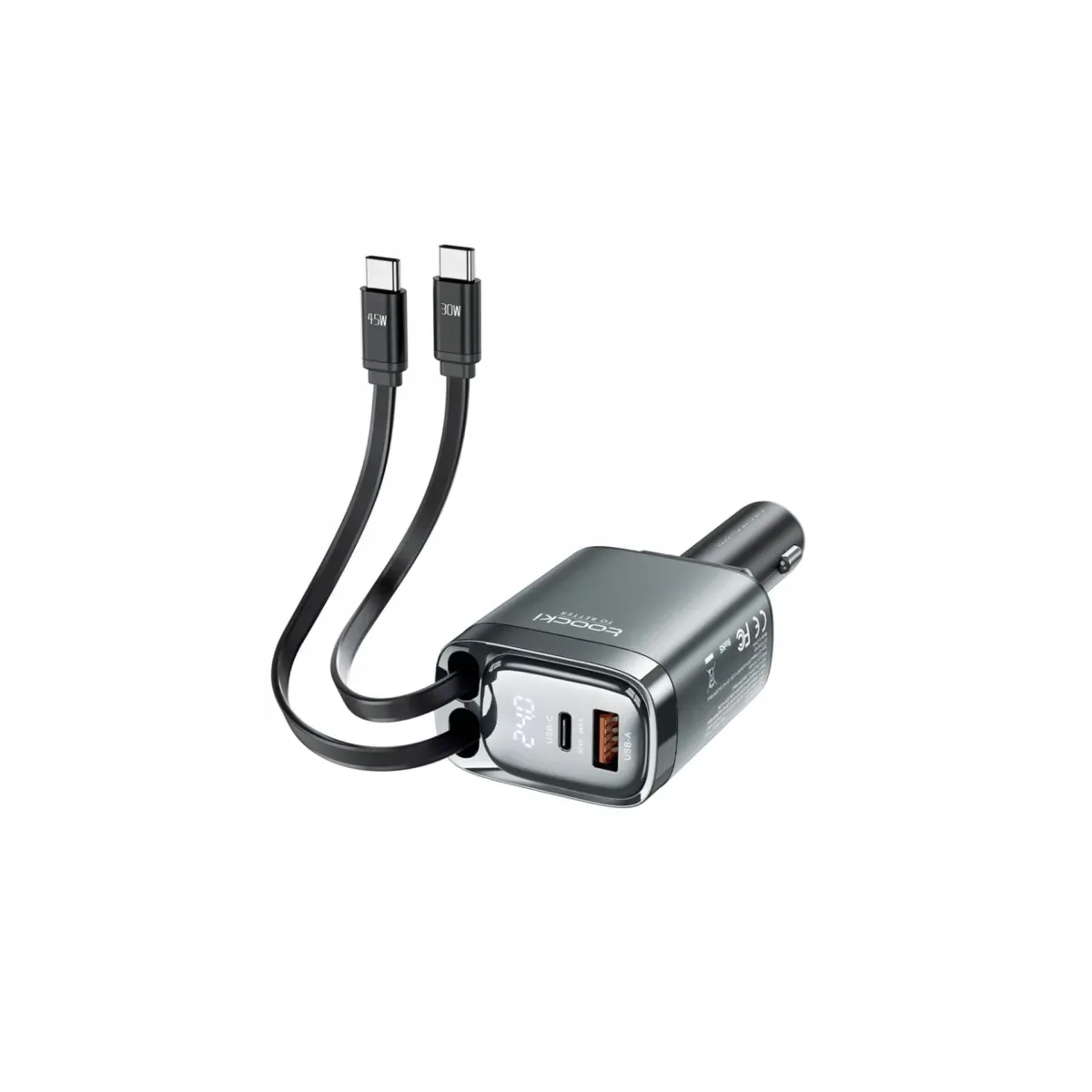 Ładowarka samochodowa Toocki 105W z wysuwanym kablem